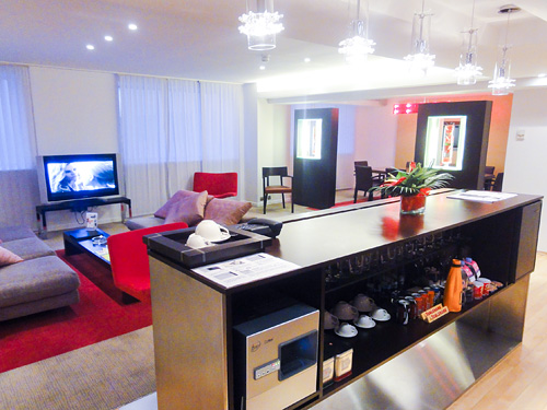 Mid January 2011, I stayed at Novotel Bucharest City Centre. Normally I don’t consider Accor Hotels except for their Sofitel and M Gallery luxury brands. But this time I found a nice deal at Novotel Bucharest: they advertised their ‘Deluxe Suite’ at almost the same rate as a Standard Room. For 102 euro per night I was offered the Eugene Ionesco Suite (‘Deluxe Suite’ on Novotel website – bellboy called it the ‘Presidential Suite’) It had one bedroom with king-size bed, two bathrooms with massage showers, a huge Jacuzzi with tv, a living room with bar and a conference area with video conference facilities. It also came with vip lounge access (free snacks and drinks), free Wi-Fi and access to the Wellness Centre.