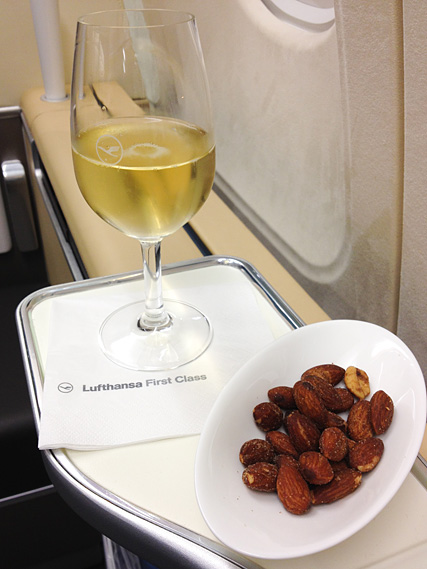 The inflight entertainment system offered the exact the same content as in Economy and Business.  As I’m a frequent Lufthansa flyer, I had already seen all movies and documentaries of my interest.  Too bad the selection in First Class was not more extensive.  I also experienced a slow responding menu navigation and found the screen resolution too low for the 21 inch screen.