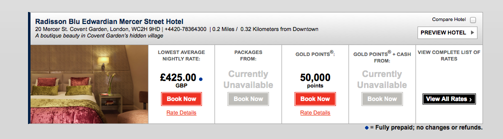50K points for one night at Radisson Blu Edwardian Mercer Street Hotel (Opening weekend London 2012 Olympics)