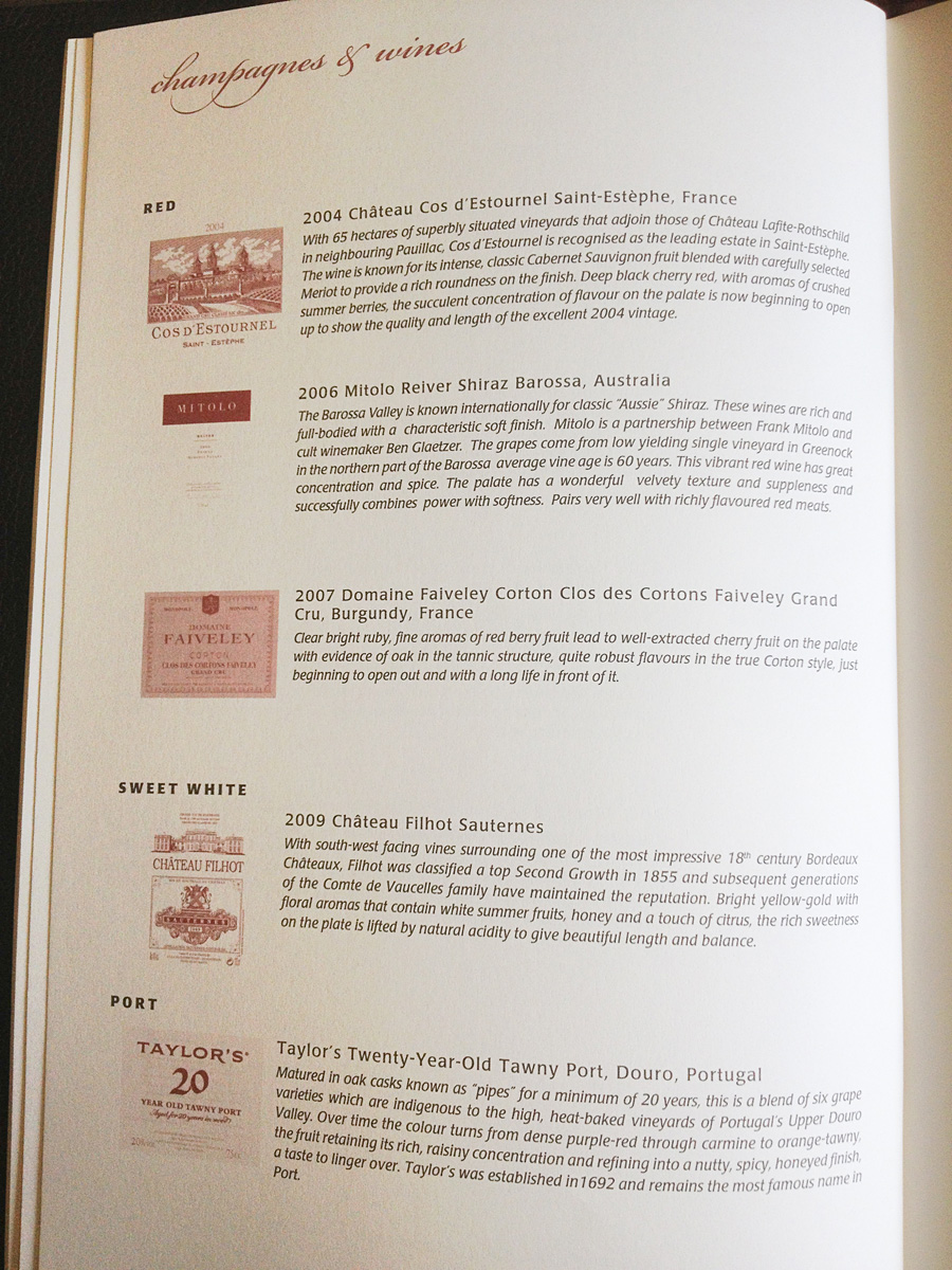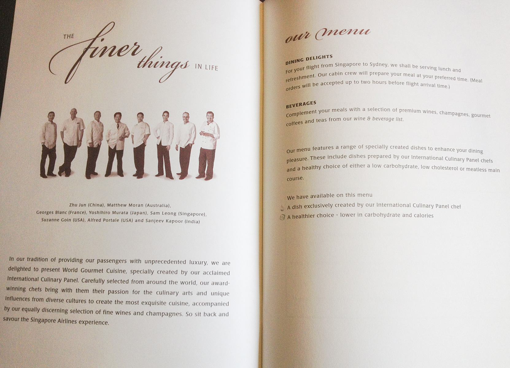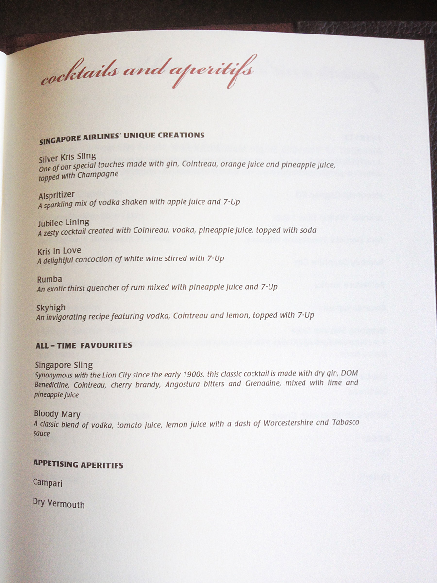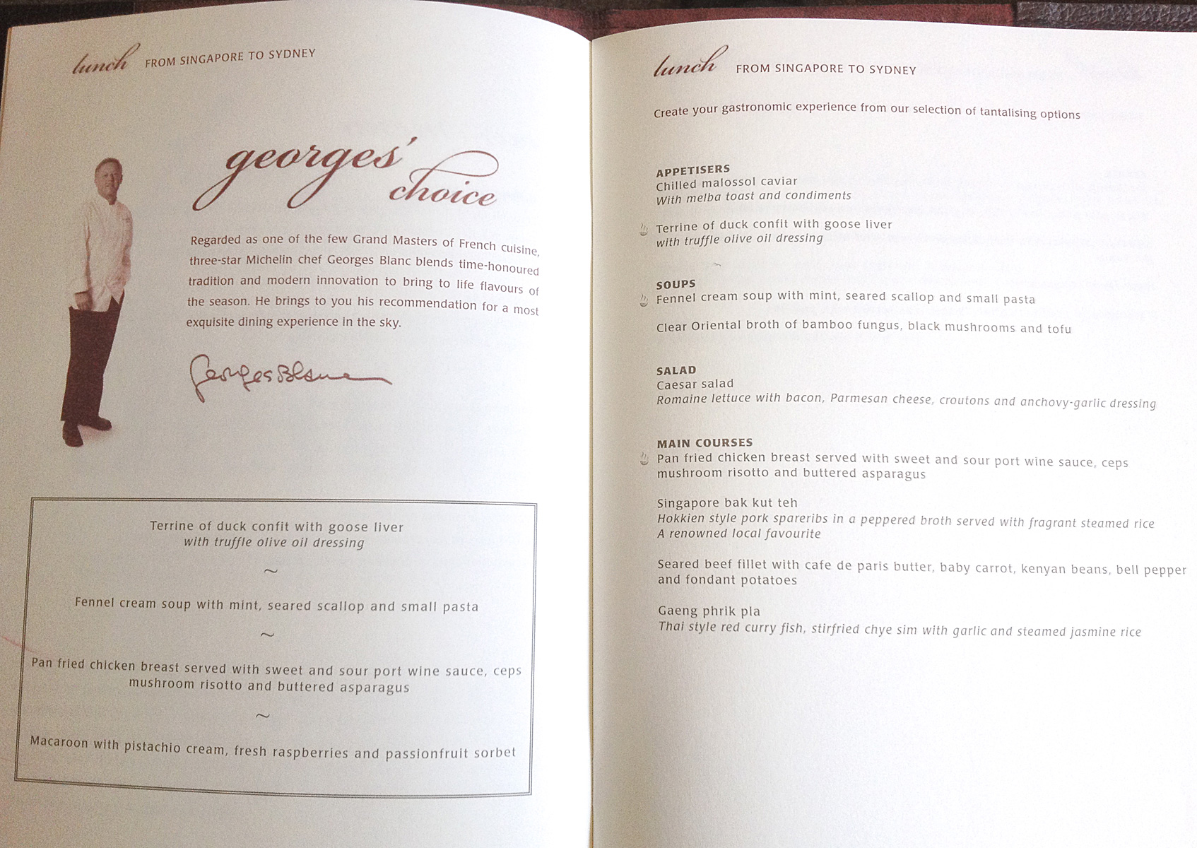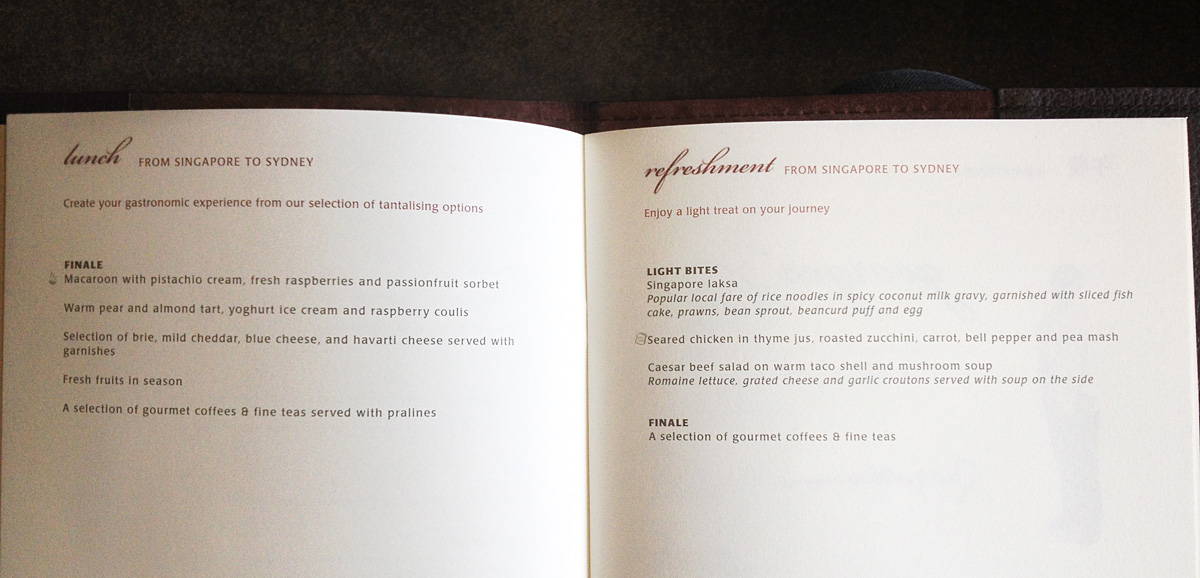 Singapore Airlines offers Business and First Class passengers the possibility to pre-order their main course up to 24h before departure.  I used the Book the Cook service to order Wagyu Sirloin with Eringi Mushroom from the Japanese menu.  Unfortunately, I wasn’t too impressed with the quality of the meat, next time I’ll go for a Singaporean dish or the Boston Lobster Thermidor.