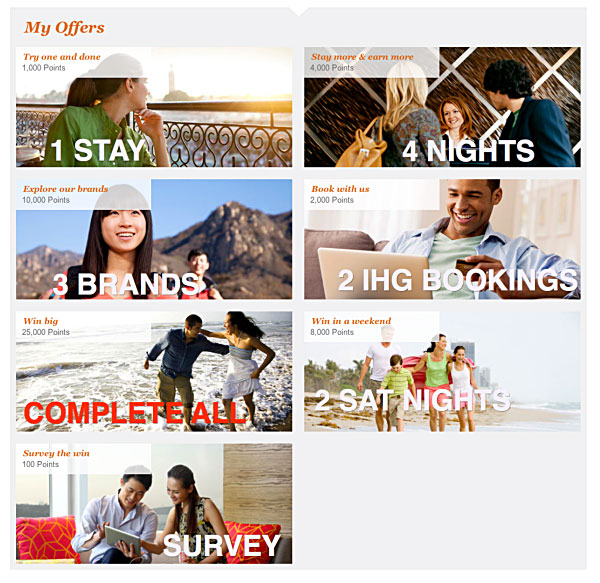 • Stay at 3 different brands (e.g. Holiday Inn, Crowne Plaza and Holiday Inn Express)