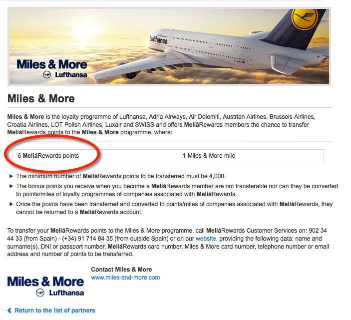• There are no indications transfers of purchased points to Miles & More would not be allowed. However, there might be an issue with the ‘bonus points’. There have been some issue with a previous bonus points offer (http://boardingarea.com/onemileatatime/2013/06/28/opportunity-to-purchase-lufthansa-miles-more-miles-for-1-67-cents-each/) where miles were converted back to points, but this has been resolved for most people now. After checking the MeliaRewards T&C I noticed a (new?) entry under paragraph 13. https://www.melia.com/nMenus/jsp/terminosCondiciones.jsp