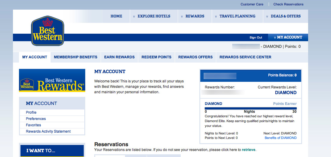 7) Logon to your Best Western Rewards account and make a screenshot of your status. (example)