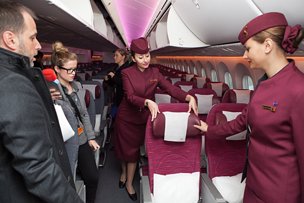 Pic: Qatar Airways B787 Dreamliner Flight Attendants at Brussels Airport (Dec 2013)