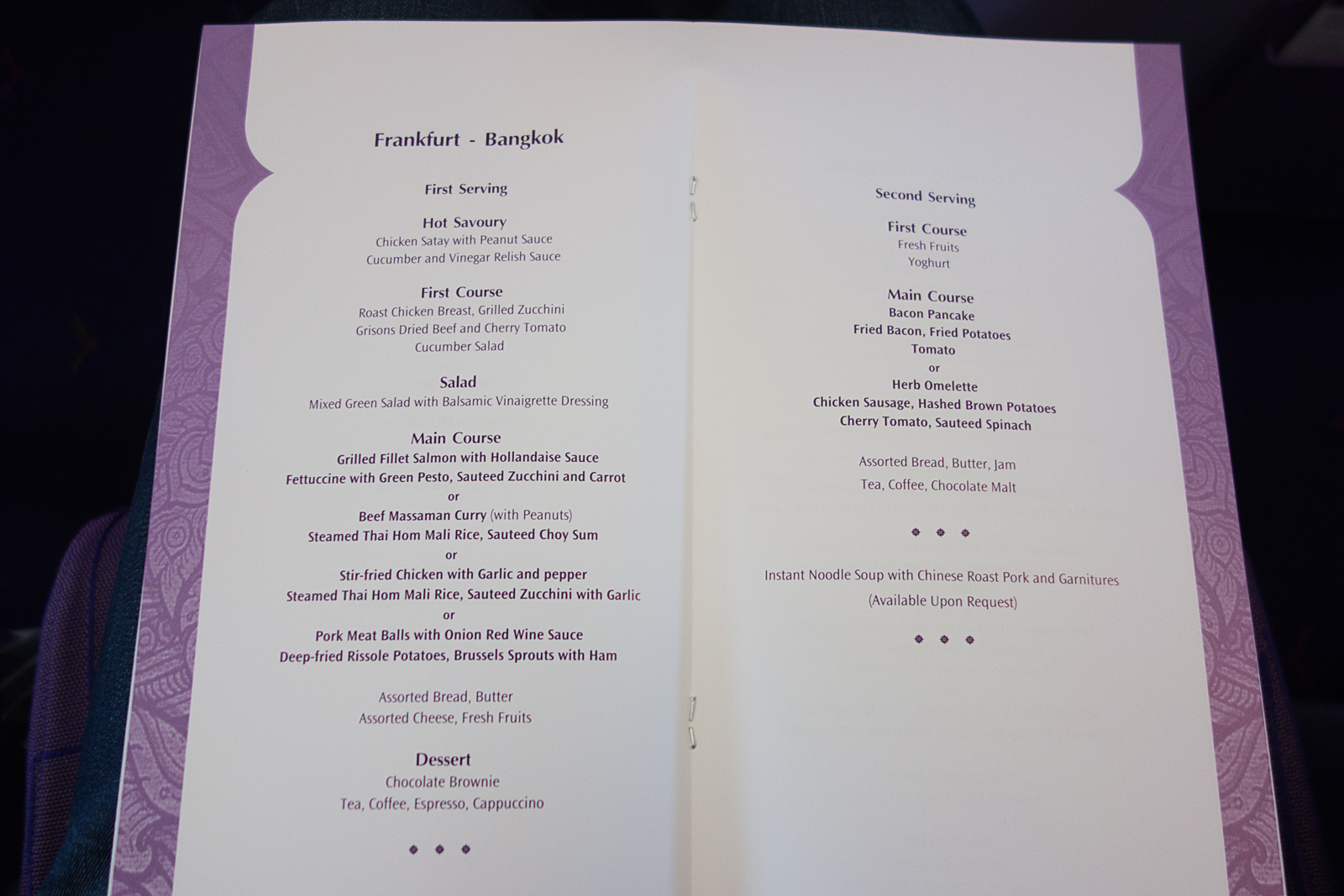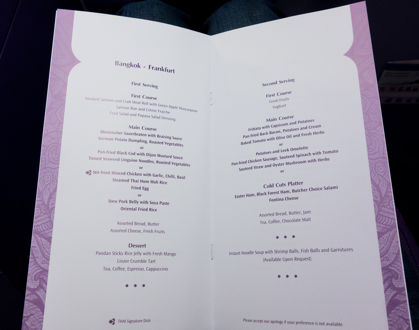 However, I did have a late night dinner on the Thai A380. Here’s the taste menu of my Bangkok-Frankfurt flight.