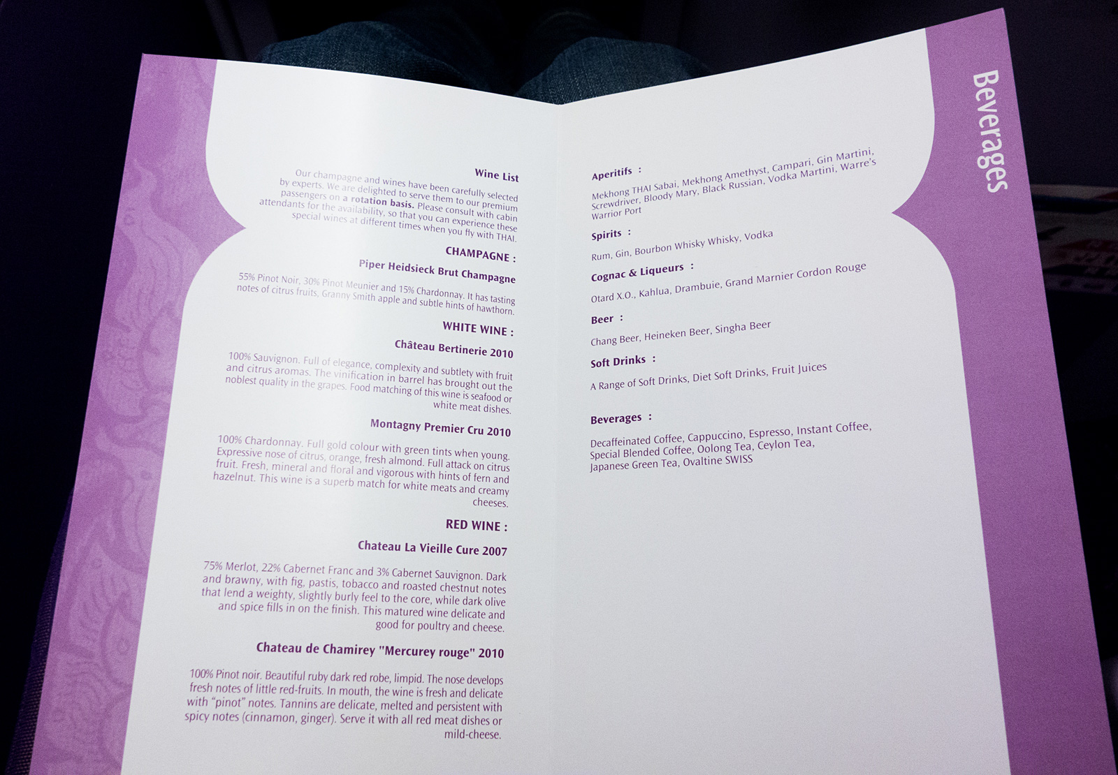 Pic: Thai Airways Business Class Chateau La Vieille Cure 2007