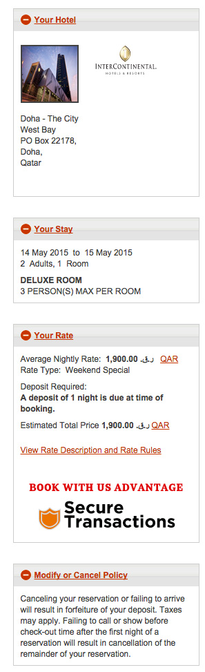 The Qatar Airways Arrivals Lounge agent arranged me a limo to InterContinental Doha The City where rates were exceptionally high that weekend due to the Doha Diamond League taking place. I used 25K IHG Rewards Club points instead of paying 1900 QAR (€481) to book my room and was upgraded to an Executive Suite. Excellent value!