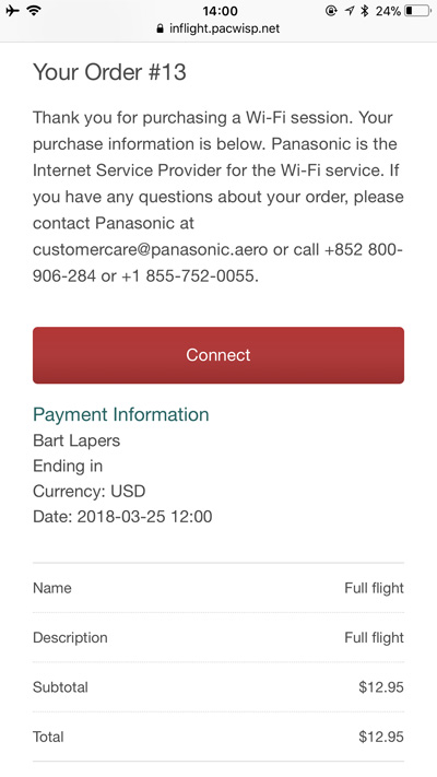 One of the things I love about modern planes is inflight connectivity as it allows me to post those Instagram Stories on the go! I experienced fast WiFi for the duration of the flight for just 12.95 USD which I found very reasonable compared to what I sometimes have to pay at other airlines. I had expected a fee of 19.95 USD as indicated on the Cathay Pacific website for flights above 6 hours. Maybe the system wasn’t configured correctly yet for the new Brussels – Hong Kong route. Let’s hope it takes a while before they figure that out. 😉