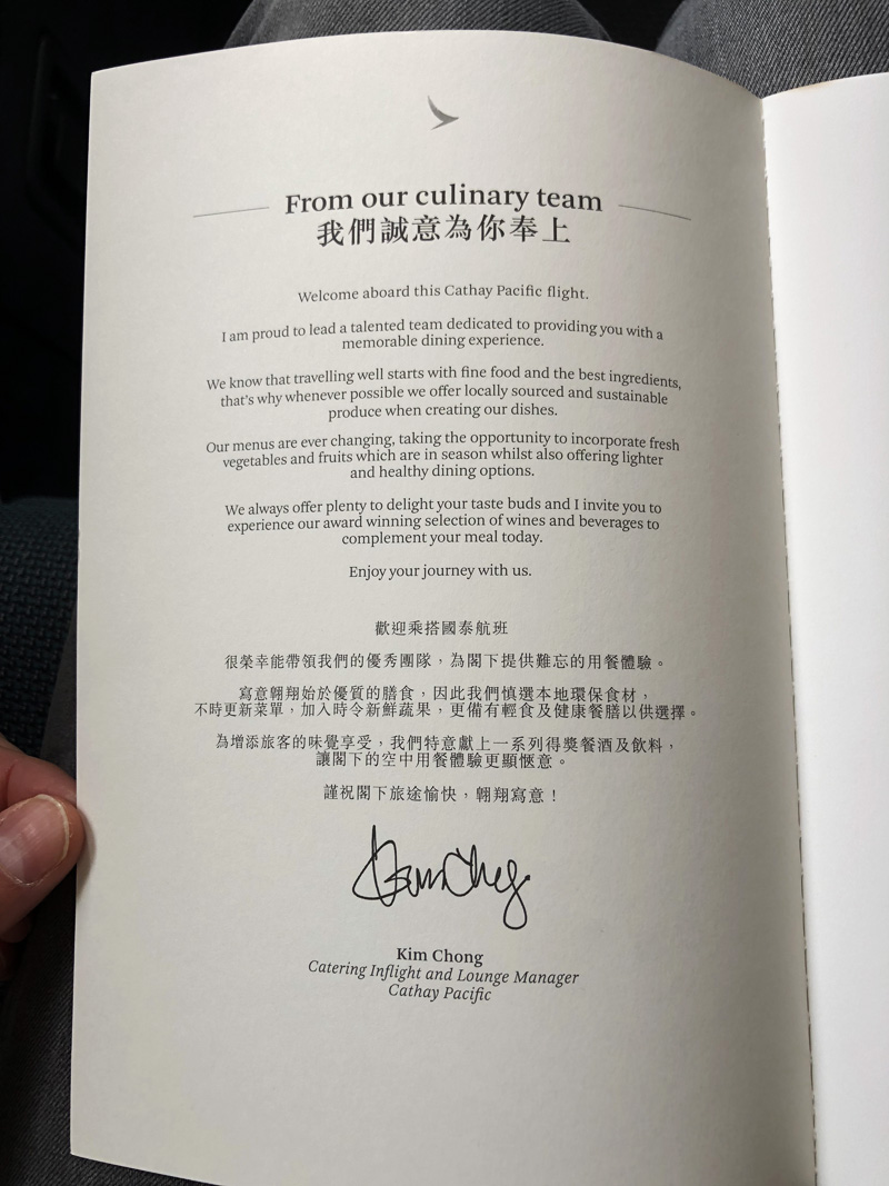 As we had another 8 hours to go before reaching Hong Kong, I unpacked the provided duvet and got comfortable in the full-flat bed with some delicious chocolates on the side. The seat was wide and spacious with lots of space to put things away. The large IFE screen had a responsive multi-touch interface and featured some of the latest Hollywood releases.