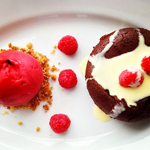 Pic: Straight from the oven chocolate cake, raspberry sorbet, vanilla anglaise at Grand Hyatt Kuala Lumpur Level 38th restaurant.